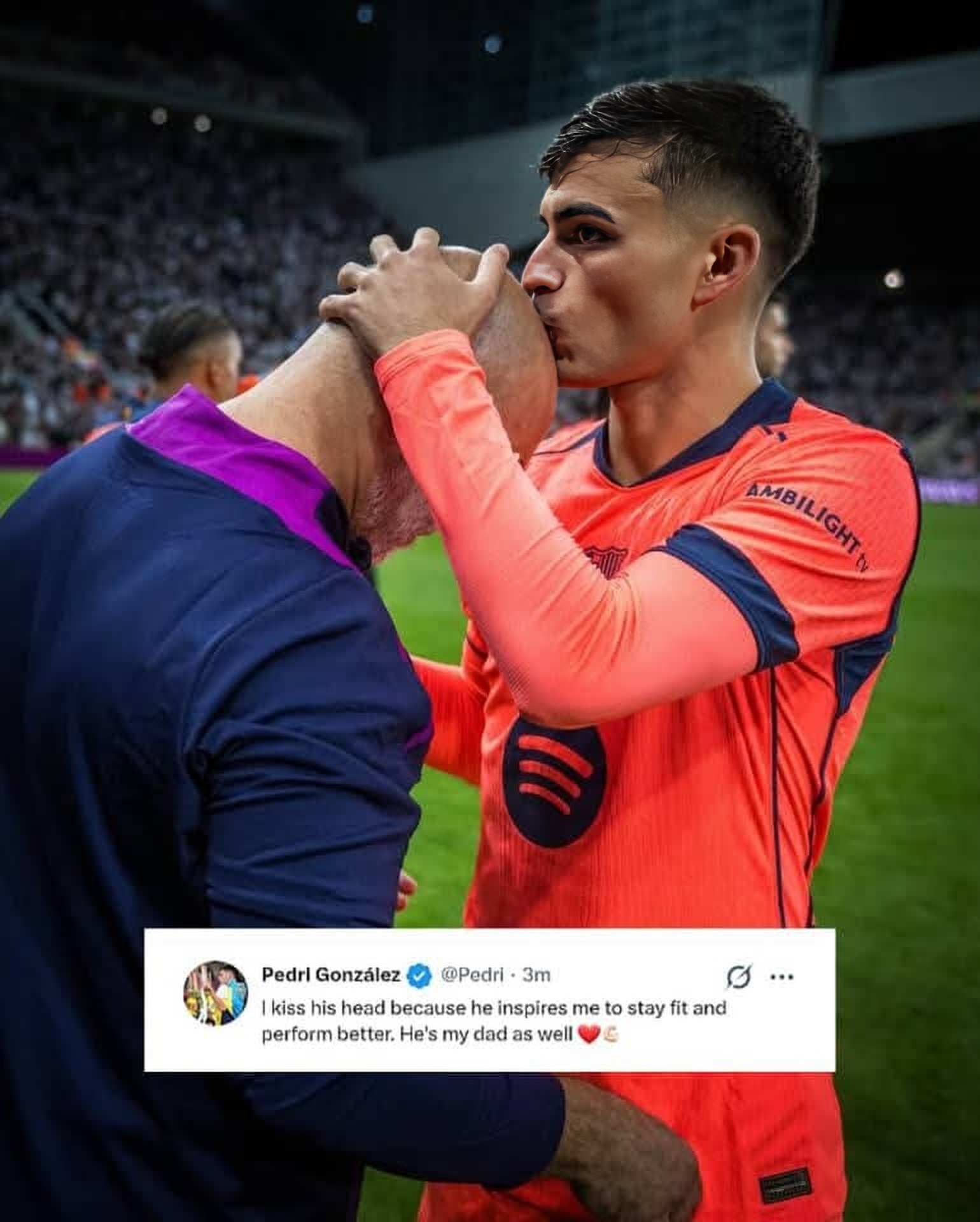 Emotionally in tune. Pedri is not afraid to show gestures of gratitude or connection — even in professional settings.